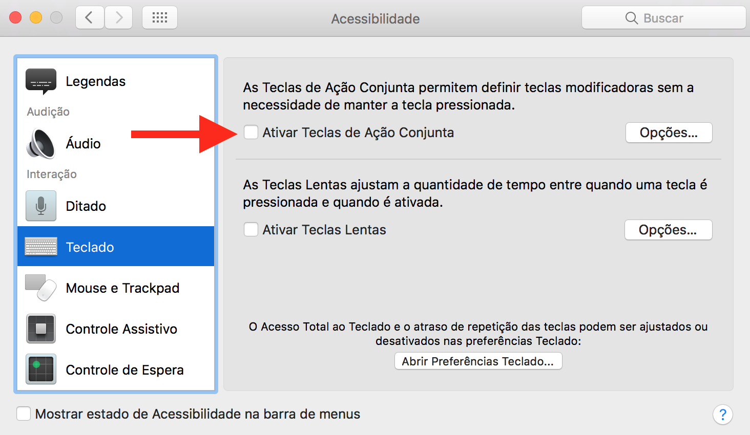 Não estou com a acessibilidade ligada, mas mesmo assim, ao pressionar uma dessas teclas, elas continuam ativas ao soltar. Para desativar, preciso pressionar novamente. Já liguei e desliguei a acessibilidade, coloquei todas as configurações de teclado no padrão, troquei o teclado e nada.